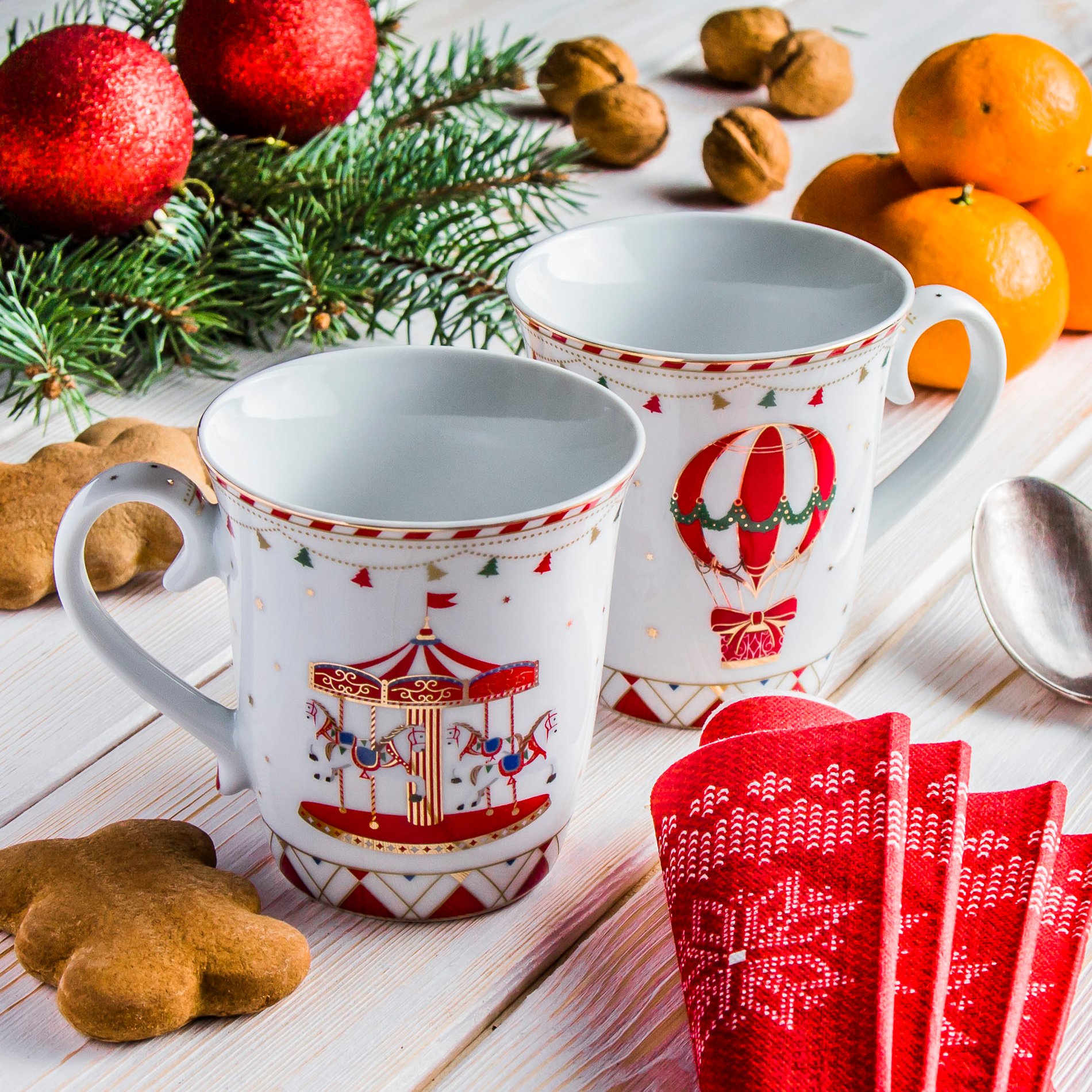 Porcelánové vánoční hrnky na stojanu MAGIC CHRISTMAS SNOW BÍLO-ČERVENÉ 330 ml 4 ks