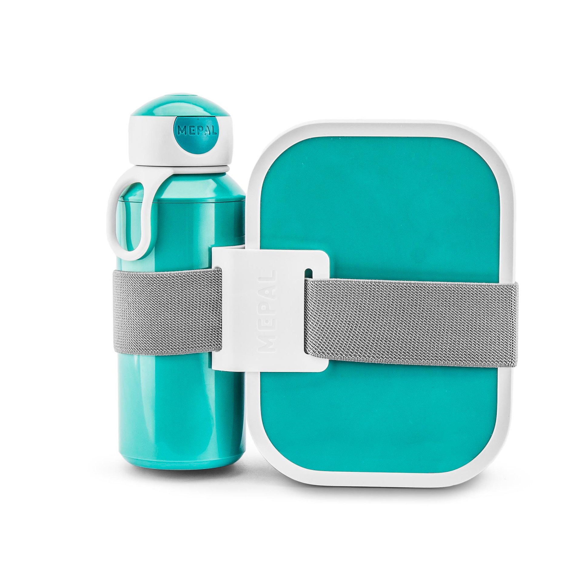MEPAL CAMPUS 750/400 ml - svačinový set pro děti, svačinový box s vidličkou a lahev pop-up, bez BPA, s motivem tropického oceánu, tyrkysový